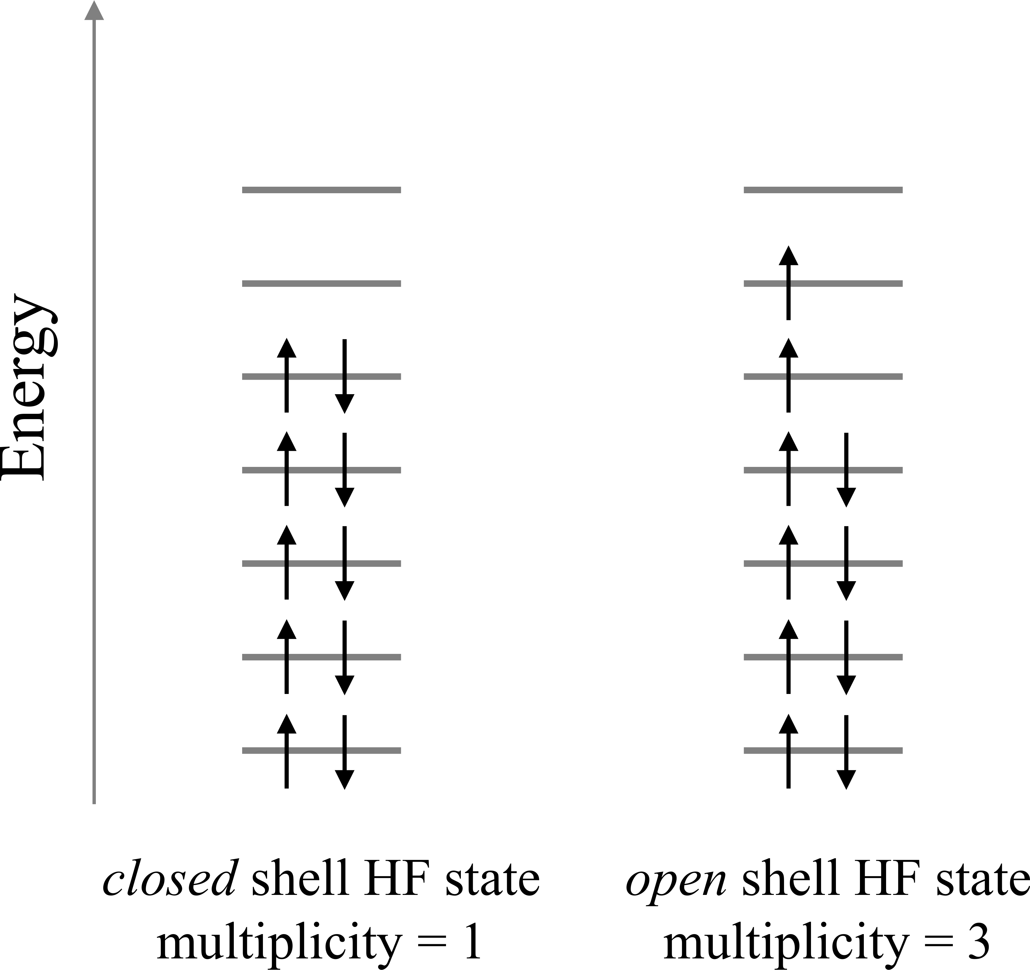 PySCF. The mean field electronic structure is saved in an hdf5-formatted file.The charge of the molecule can be given to simulate cationic/anionic systems. Also, the spin multiplicity can be input to determine the number of unpaired electrons occupying the HF orbitals as illustrated in the figure below.